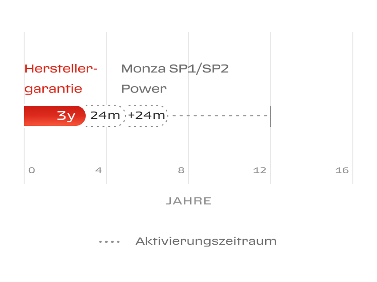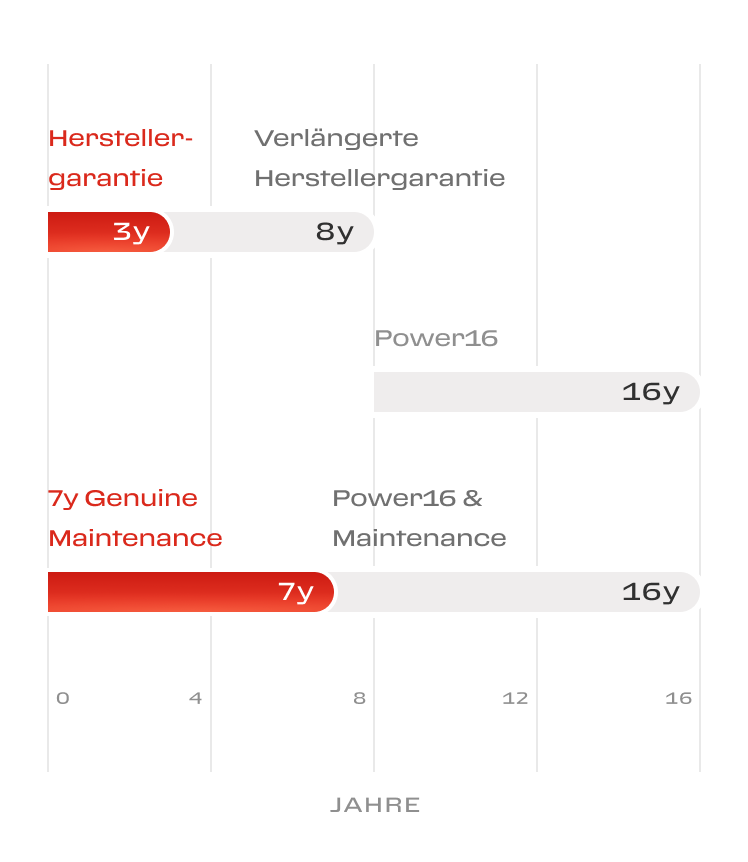 Die Deckung Power16 hat eine Laufzeit von 12 Monaten und kann bis zum 16. Jahr des Fahrzeugs jährlich verlängert werden.