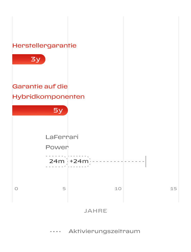 Hinzu kommen die folgenden Plug-in-Hybridfahrzeuge, für die zusätzliche Garantien gewährt werden: SF90 Stradale, SF90 Spider, SF90 XX Stradale, SF90 XX Spider, 296 GTB und 296 GTS.