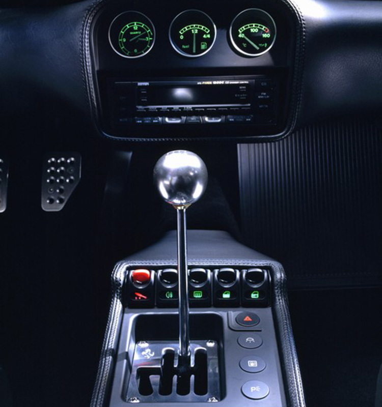 However, the technological content of the 355 F1 was vastly more advanced than its predecessors, having been tried and tested in Formula 1. We only have to consider the aerodynamics, the subject of detailed studies by Pininfarina, which not only determined the style and shape of the aluminium and steel body, but also the design of the flat bottom to achieve a perfect balance of vertical loads. Indeed, the F355 Berlinetta was the first car with a shape that optimised the disposal and control of the air flows in the underbody, ensuring a constant interaction between the vehicle and the ground to the advantage of road holding. The engine itself was the subject of study and transfer of technology from the track, providing the F355 with extremely high performance: 109 hp/litre. Specific power and torque were the result of the adoption of a head with five valves per cylinder and electronic fuel injection. On top of this already superb base, Ferrari decided to introduce a revolutionary element from Formula 1: a semi-automatic gearbox with steering wheel controls. This technological innovation was developed for single-seaters as early as 1979, thanks to Mauro Forghieri’s intuition, but was only brought to the track in 1989 when Nigel Mansell and his 640 F1 won in Brazil, in its debut season. Eight years passed from its victorious debut in F1 to its use in a Prancing Horse road car , and the vehicle chosen was an evolution of the F355 Berlinetta that, for this reason, changed its name to 355 F1 Berlinetta.