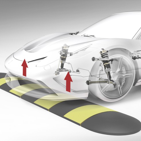 To guarantee maximum performance in any driving situation, Ferrari Genuine offers a system that makes it easier to drive over bumps or ramps and avoid damaging the vehicle. The lift system, which acts on the shock absorbers, lifts the vehicle approximately 40 mm.