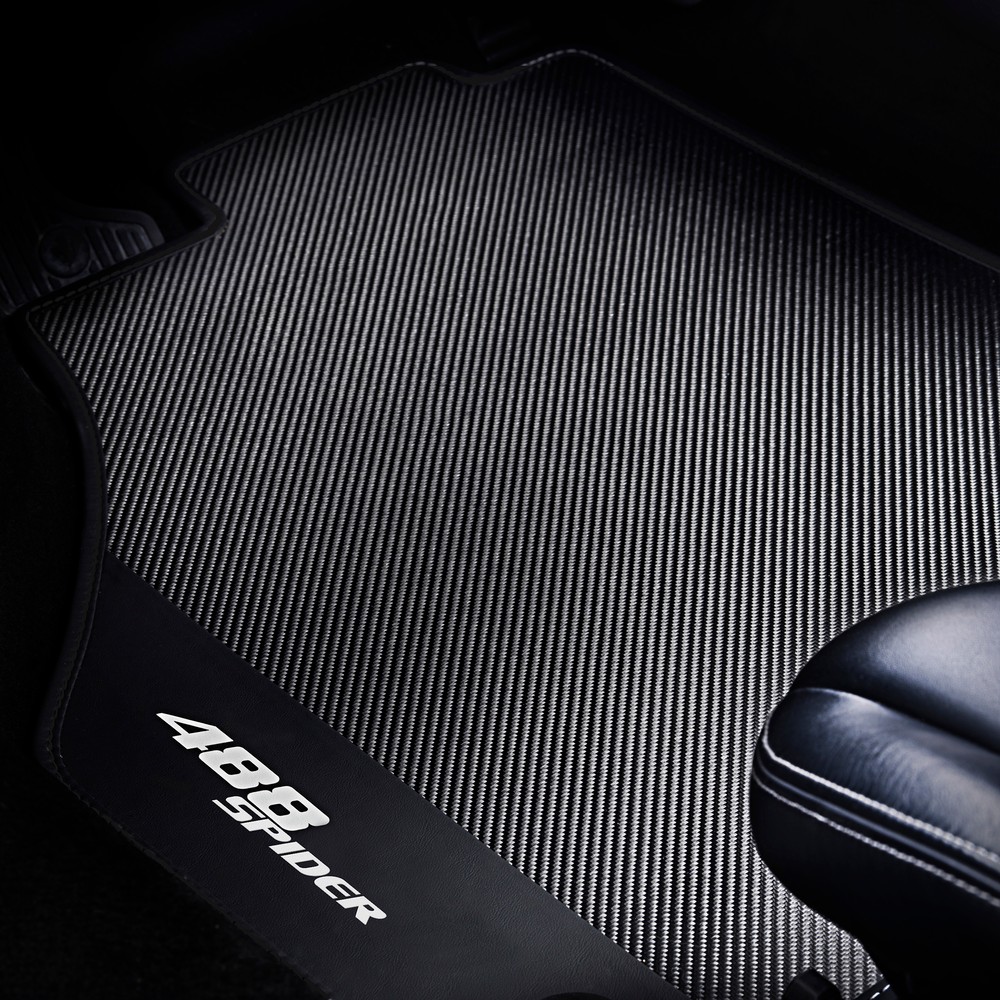 Ferrari Genuine overmats are made of carbon fibre and covered with a special clear coat layer which gives the mat a non-slip finish without compromising the look of the material.