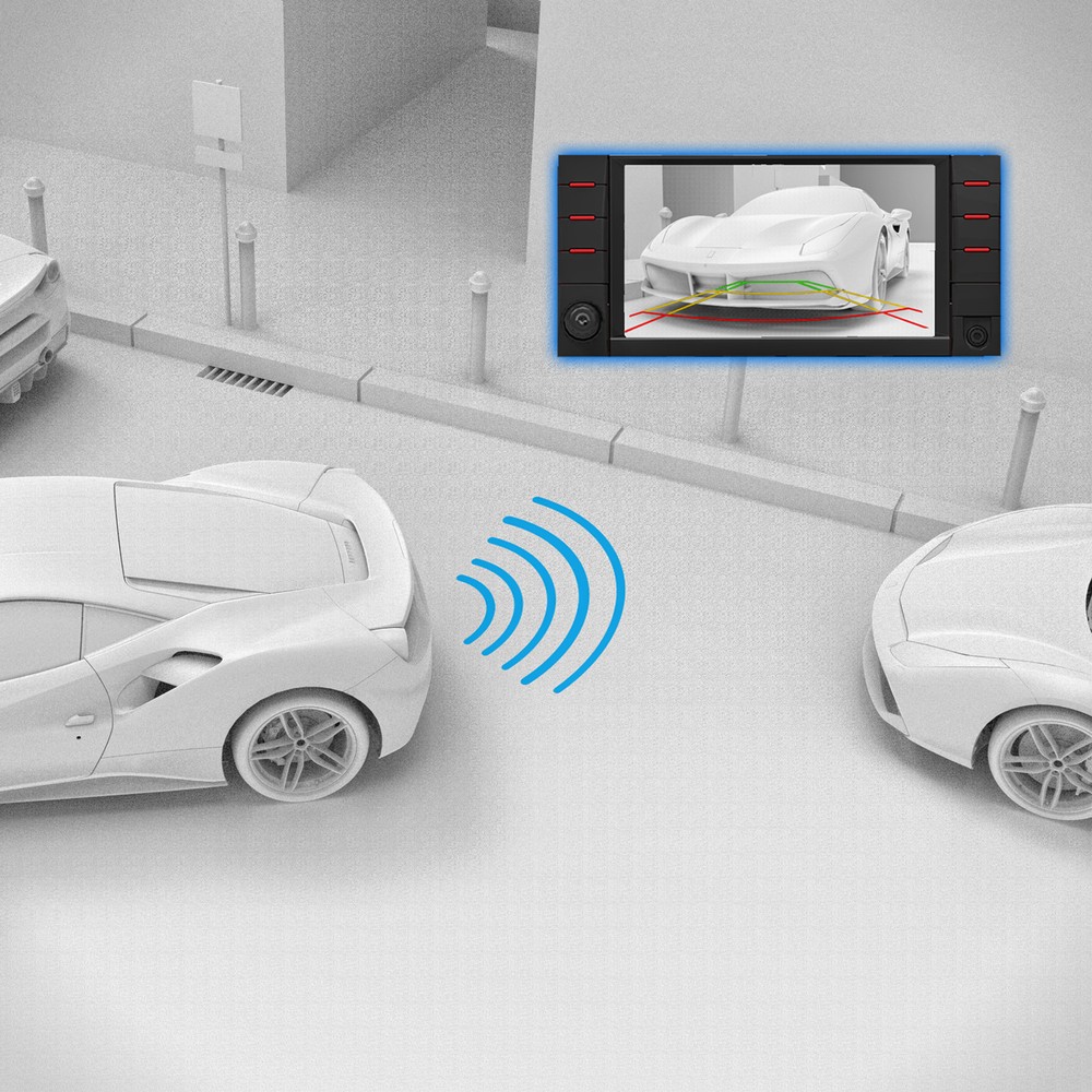 The Ferrari parking camera system helps to prevent accidentally hitting an obstacle when parking. The kits, which include front and rear cameras, display the necessary information on the instrument panel and, thanks to the addition of parking sensors and a practical virtual grid, assist the driver when manoeuvring