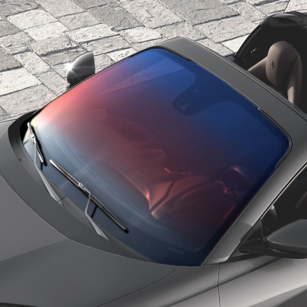 Ferrari offers a completely transparent athermic windscreen to replace the conventional windscreen.