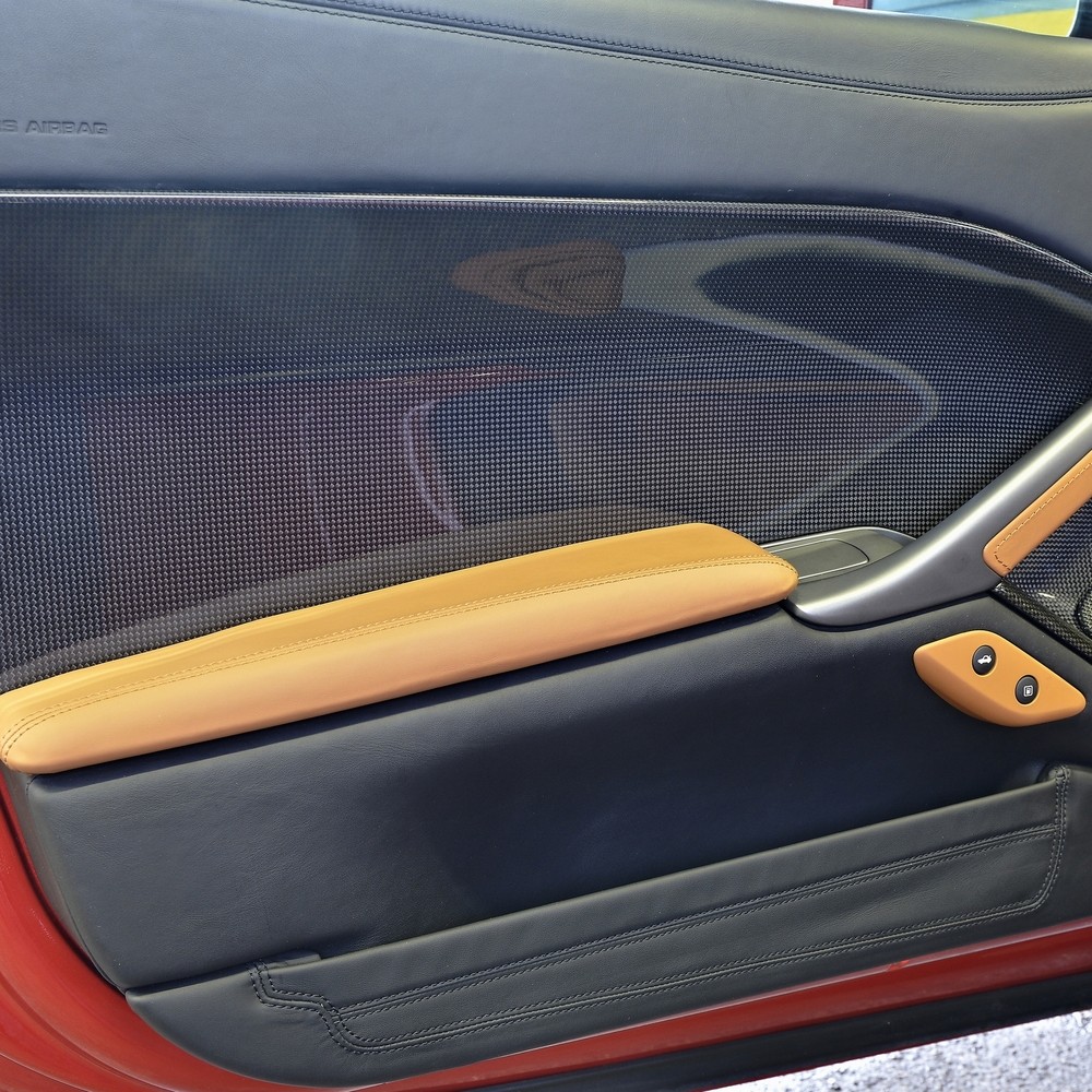 The carbon fibre door panels are an example of Ferrari excellence in the development of technological composite elements and help to enhance the sporty style of the passenger compartment.
