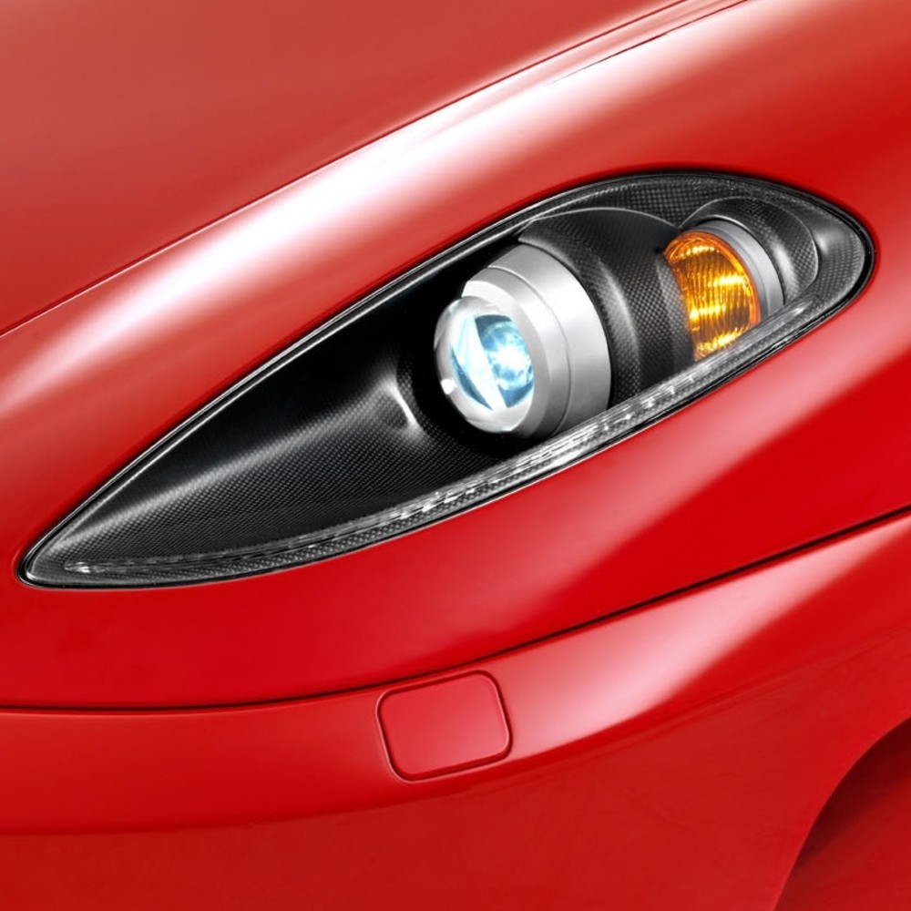 The Ferrari Genuine programme offers customers the chance to replace the standard headlights with a carbon fibre kit which combines a solution with a strong aesthetic impact with a high quality technical material.