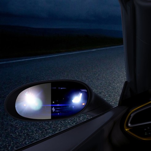 The electrochromic mirrors effectively reduce reflected glare for the driver. This mirror uses special electrochromic technology to darken quickly and automatically in response to the brightness of the light striking it.