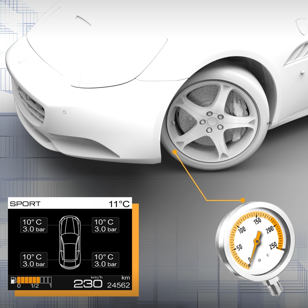 Using sensors installed within the wheels, the tyre pressure monitoring system measures tyre pressure continuously and sends this information to the ECU, which relays the information to the instrument cluster and warns the driver of any problems in real time.