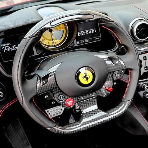 The steering wheel is a direct link between the vehicle and the driver, a heart that transforms an idea into action with its beat. This carbon fibre option enhances its sporty nature. In this configuration, Ferrari Genuine gives you the option of having LEDs in the upper part of the steering wheel, an aid to sportier driving inherited directly from experience in Formula 1.