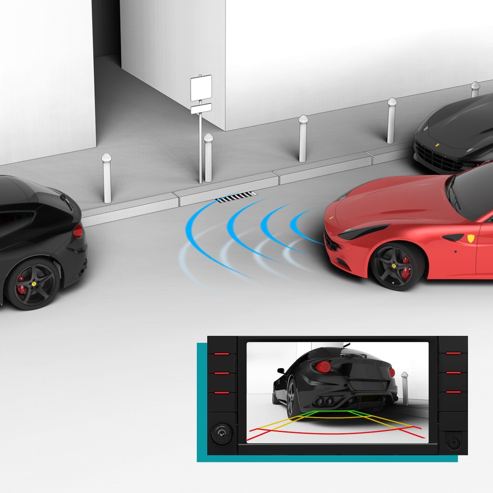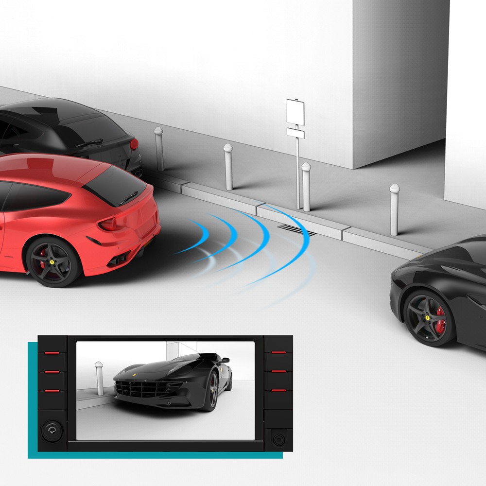 The Ferrari parking camera system helps to prevent accidentally hitting an obstacle when parking. The kits, which include front and rear cameras, display the necessary information on the instrument panel and, thanks to the addition of parking sensors and a practical virtual grid, assist the driver when manoeuvring