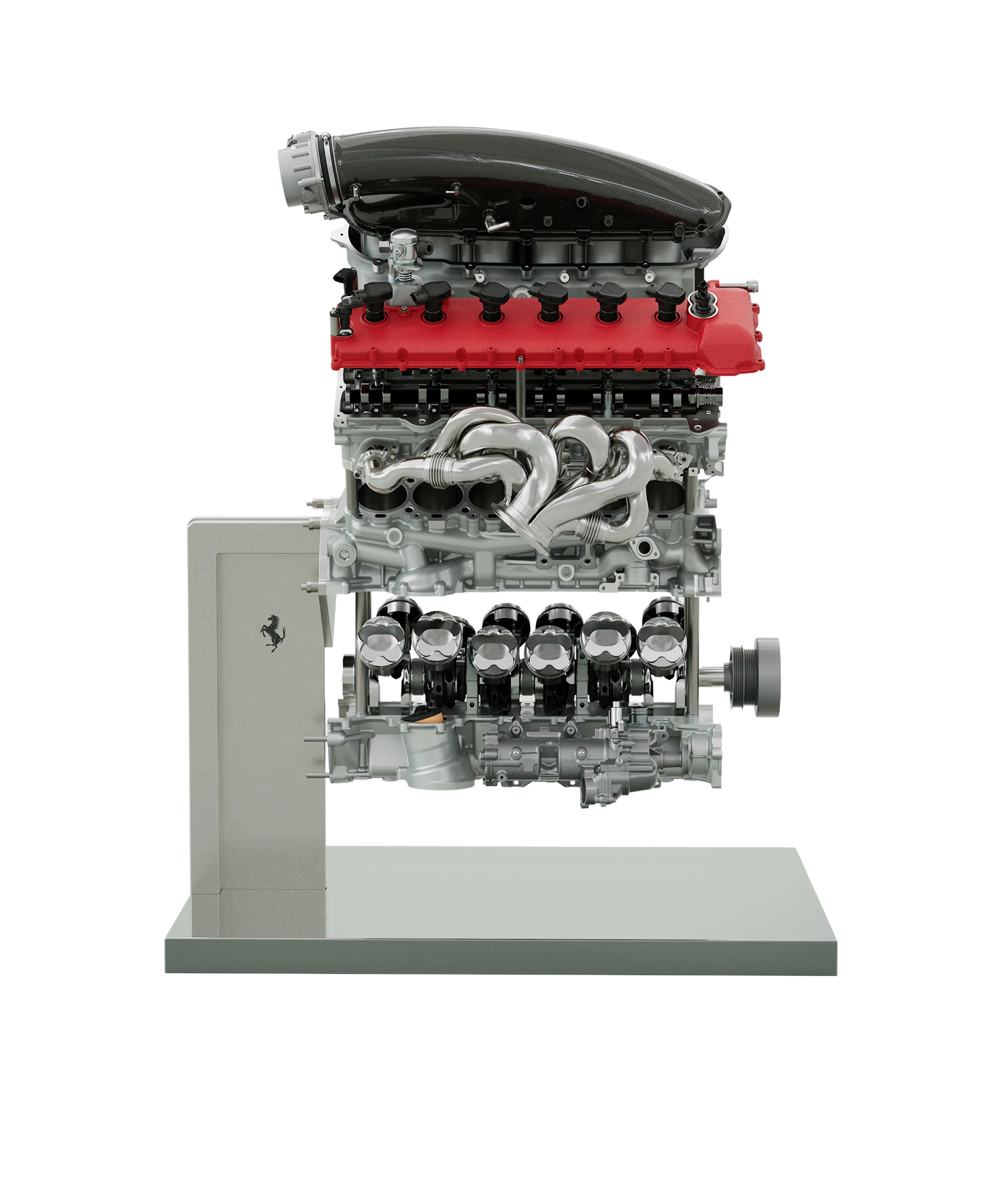 Suspended in space, the authentic Daytona SP3 engine transcends the traditional collector’s piece: it is the heart of the Prancing Horse, reimagined as a piece of design.