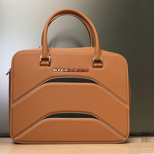 GTC4Lusso T • TravelWork bagGTC4Lusso T • TravelWork bagThe Ferrari Genuine catalogue offers customers the chance to order a practical bag with shoulder strap. The bag is made of high quality leather with personalised stitching and detail.Work bagDownload PDFRequest information