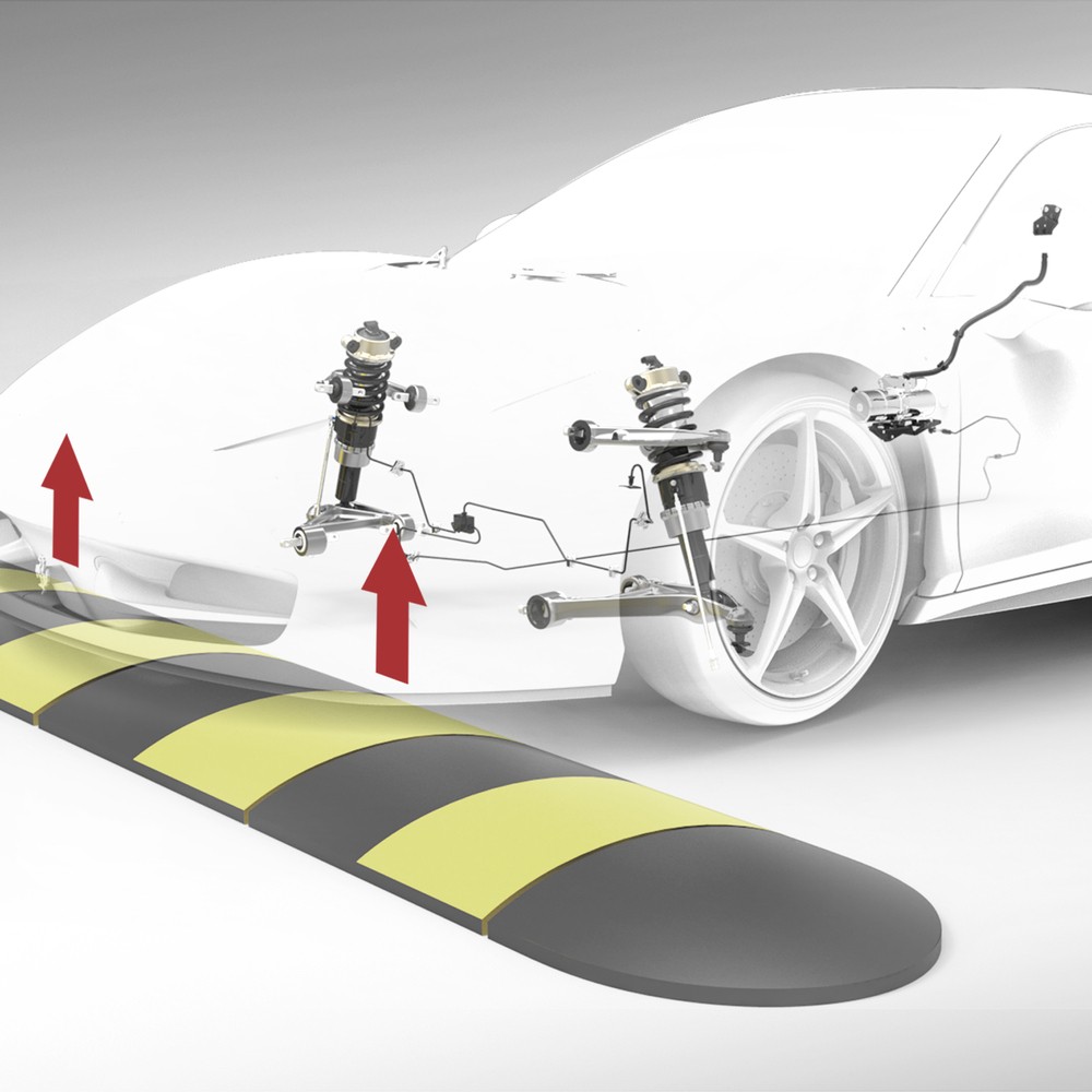 To guarantee maximum performance in any driving situation, Ferrari Genuine offers a system that makes it easier to drive over bumps or ramps and avoid damaging the vehicle. The lift system, which acts on the shock absorbers, lifts the vehicle approximately 40 mm.