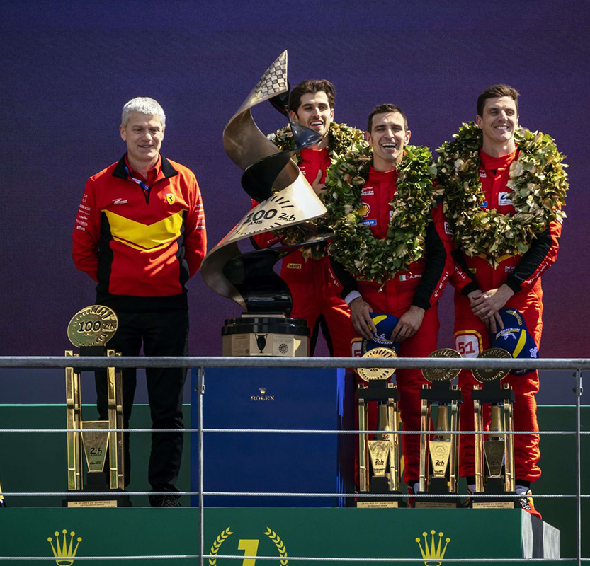 “What we did at the 24 Hours of Le Mans is undoubtedly unique, a page inscribed in motorsport history. Returning to compete in the top class after half a century and taking the Prancing Horse back to victory, 58 years after the success in 1965 with the 250 LM driven by Jochen Rindt and Masten Gregory, was an extraordinary achievement. During the race, we never made a mistake with a pit stop, a strategy or a driver’s choice. Everyone showed great clarity. To win a 24 Hours of Le Mans, you need an excellent car but also great organisation of the entire team. I think it was the highlight of my professional career to date and that of the co-workers I had alongside me.”