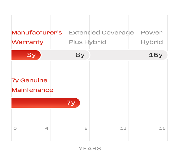 The extension to the Manufacturer’s Warranty can be taken out when the car is bought, throughout the entire standard warranty validity period, or within 30 days before its expiry.