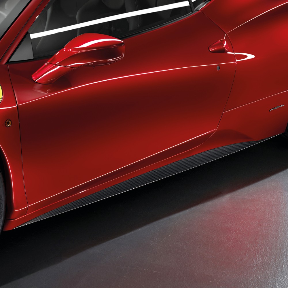Ferrari Genuine gives customers the chance to replace the traditional under-door installed on the vehicle with an under-door kit in open weave carbon fiber.