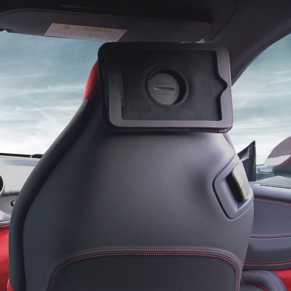 Two Mini iPad holders can be installed in the rear of the passenger compartment on the back of the front seats.