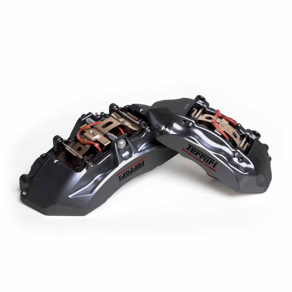 The Ferrari Genuine accessories catalogue offers customers the chance to personalise their vehicle by installing brake callipers in various colours: glossy black, Giallo Modena, aluminum, Rosso Corsa, Rosso Scuderia, dark grey, blue, and gold. Anodised black brake callipers have been created for Gentlemen Drivers and track use since this treatment guarantees higher resistance even when the braking system is subjected to severe use.