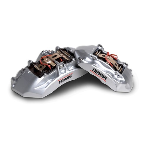 The Ferrari Genuine accessories catalogue offers customers the chance to personalise their vehicle by installing brake callipers in various colours: glossy black, Giallo Modena, aluminum, Rosso Corsa, Rosso Scuderia, dark grey, blue, and gold. Anodised black brake callipers have been created for Gentlemen Drivers and track use since this treatment guarantees higher resistance even when the braking system is subjected to severe use.