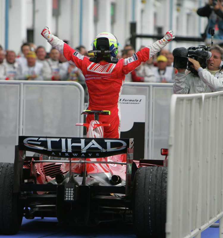 Felipe’s tears mixed with the driving rain as he beat his hand on his chest. Defeat… But in the minds of the Brazilian crowd which gave him an ovation of the kind they had previously only reserved for the legendary Ayrton Senna. Ferrari consoled itself with the 16th Constructors’ title in its history.
