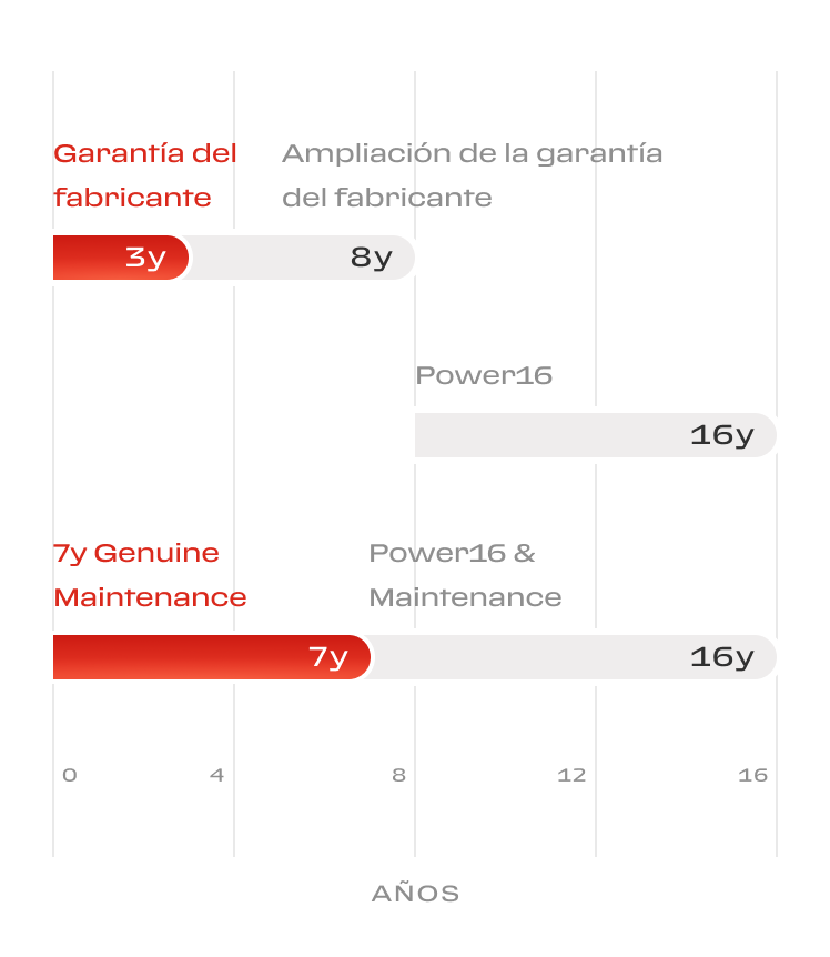 La cobertura Power16 tiene una duración de 12 meses, renovables anualmente hasta el 16º año de vida del coche.