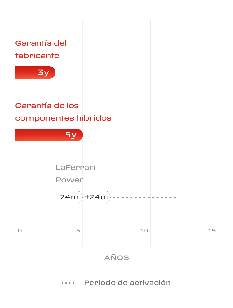 La garantía de los componentes híbridos de Ferrari ofrece una cobertura estándar de 60 meses a partir de la primera entrega del coche al cliente final. Esta garantía cubre específicamente el sistema híbrido y sus componentes, incluidos el sistema de gestión de la batería (BMS y CSC), los módulos inversores, la batería de alta tensión HVB, el módulo de control de gestión de la alimentación eléctrica y los motores eléctricos. También permite a los propietarios disfrutar de la experiencia de conducir su Ferrari con la tranquilidad de saber que el sistema híbrido está protegido.