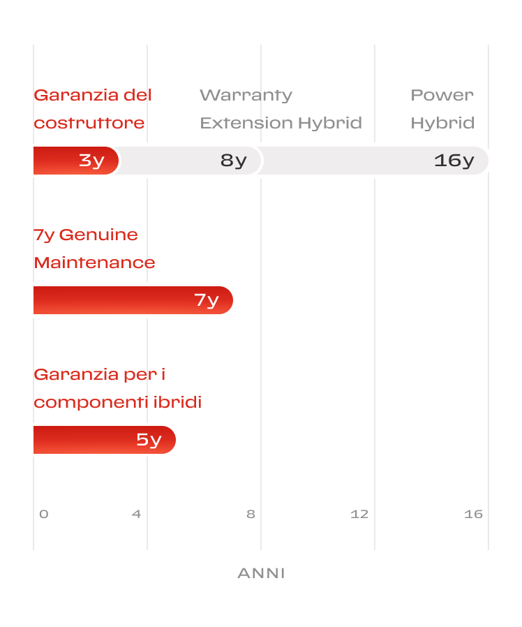 La garanzia per i componenti ibridi ha una durata di 60 mesi a partire dalla data di consegna della vettura al Cliente finale.