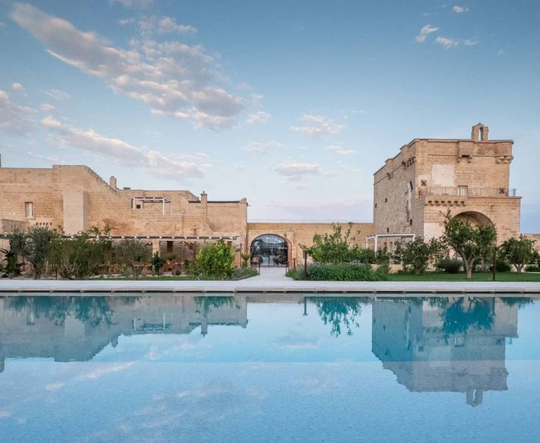 A stay at Masseria Donna Menga offers an authentic experience, surrounded by ancient olive groves and the gentle Apulian landscape. The architecture blends historical charm with contemporary elegance, enhanced by natural materials throughout.