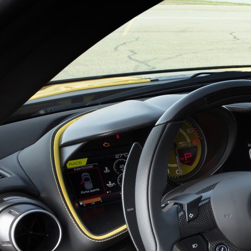 La cura anche nei più piccoli dettagli dona alla vettura un tocco di sportività aggiuntiva senza penalizzare lo stile caratteristico che contraddistingue le vetture di Maranello.