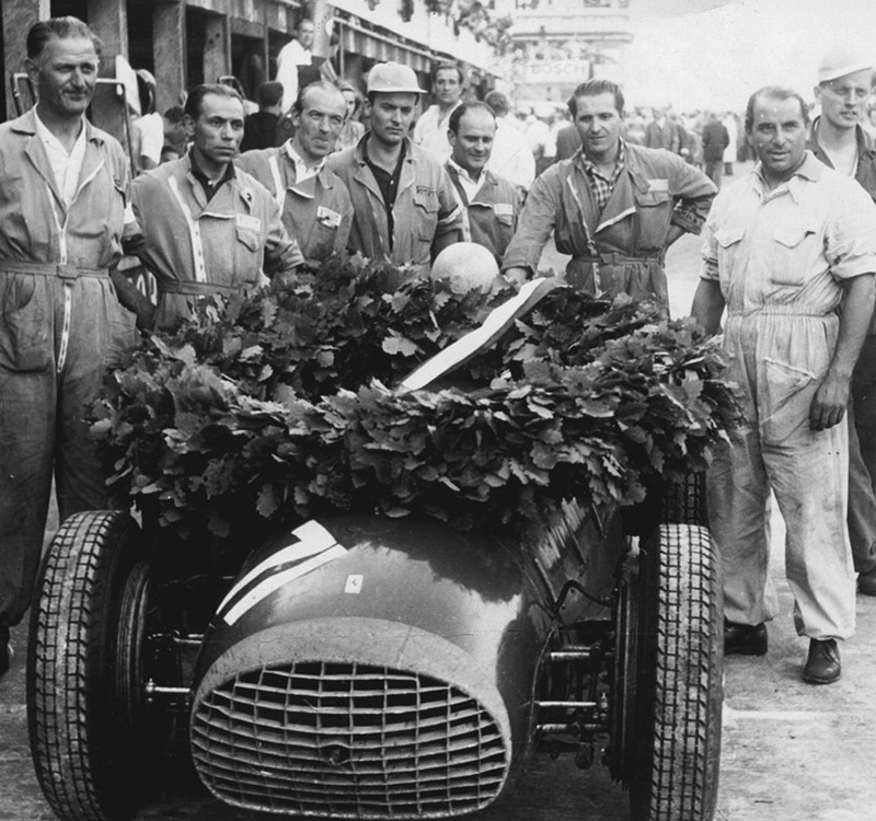 而这里所说的母亲,正是指阿尔法·罗密欧汽车公司。恩佐曾经在那担任测试员、车手和车队经理,并制造出称霸世界各地赛道的超级跑车。 1951年7月14日,周六,英国银石赛道。阿根廷籍车手冈萨雷斯从杆位起步,以足足50秒的优势战胜了同乡胡安·曼纽尔·方吉奥(Juan Manuel Fangio),越过终点线。冈萨雷斯击败了曾经被视为战无不胜的阿尔法·罗密欧车队的车手方吉奥和尼诺·法里纳(Nino Farina)。法拉利车队获得了期待已久的胜利,这也是其在F1赛事中获得的第一个冠军。同时,这场胜利唤起了恩佐曾经效力于阿尔法·罗密欧车队的记忆。