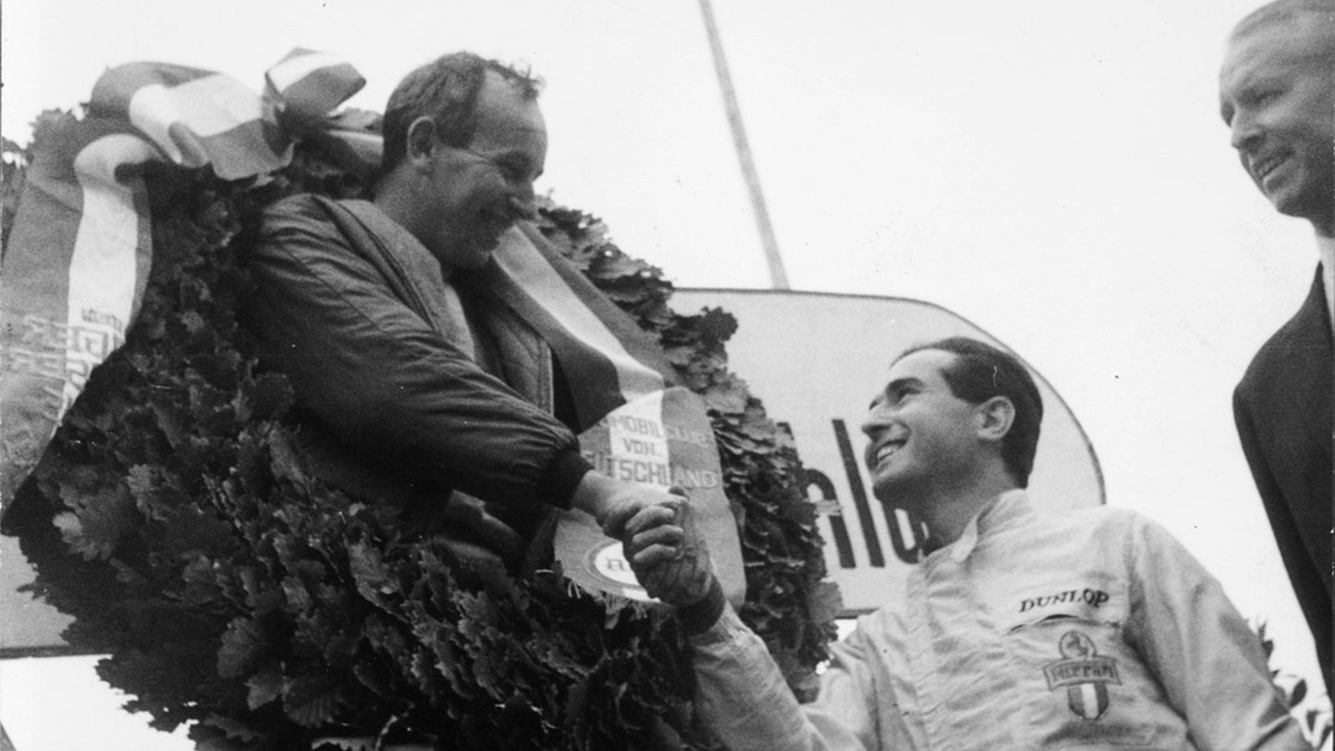 1956年至1960年间,约翰·苏提斯驾驶MV Agusta获得三次350CC组别冠军和四次500CC组别赛世界冠军。1964年,驾驶法拉利赢得了F1世界冠军。同时,苏提斯为法拉利的冠军头衔也做出了许多贡献,其中包括:1964年的F1制造商冠军, 1963年至1965年世界耐力跑车锦标赛冠军,赛百灵12小时耐力赛冠军、两次纽伯格林赛冠军以及1966年蒙扎赛的冠军。 1960年,26岁的苏提斯出现在F1赛场上冲锋陷阵,同时他仍参加着各种摩托车赛事,展现出难得一见的赛车天赋。 1962年他与恩佐·法拉利签订了1963赛季的合作协议,这对于双方来说都是难得的机遇。那年,苏提斯作为英国车队的一员,驾驶250 GTO参加家乡的各项赛事以及各大制造商锦标赛。 1963年,苏提斯为法拉利车队拿下了纽伯格林赛道冠军,并在传奇的银石赛道获得亚军。之后他又赢得了佩尔古萨和南非的卡拉米两场比赛,虽然当时这两站并不计入F1积分中。 1964年是具有历史性的一年,苏提斯驾驶着搭载V8发动机的全新158赛车纵横赛道。这个型号的发动机也成为了未来一系列公路版豪华旅行车的始祖,时至今日仍是法拉利DNA中的一部分。 在苏提斯参加的所有比赛中,他所获得的成绩不是冠军,就是亚军,或者就是被迫退赛。