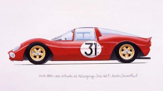 当时的瓦卡里32岁,班蒂尼30岁。这两位年轻的意大利车手势不可挡,在各种国际赛事中大放异彩。法拉利一向对年轻车手偏爱有加,为了让车手在经受考验的同时,不至于过度消耗体力,法拉利决定让他们轮流参赛。 因此,瓦卡里还代表法拉利车队参加1965年的意大利F1大奖赛,虽然他一直占据第6位,后来还因为发动机出现故障不得不退赛。但无论如何,1964年和1965年依然是瓦卡里收获颇丰的两年。他的同伴班蒂尼也是如此。巴蒂尼在F1世界锦标赛中取得第4名,获得勒芒24小时耐力赛的冠军和两次塔格·佛罗热耐力赛的冠军。赢得西西里马拉松一直是他心中的目标,这一次他也终于与瓦卡里一同达成心愿。 两人在塔格·佛罗热中驾驶的275 P是P系列家族的成员。这一系列的车型自1964年开始研发,历时四年;1965年推出的275 P2,与330 P2的区别在于它配置了更大排量的发动机。这款车型可谓是P系列的首次真正革新——法拉利首次为赛车选用铝制车身结构。